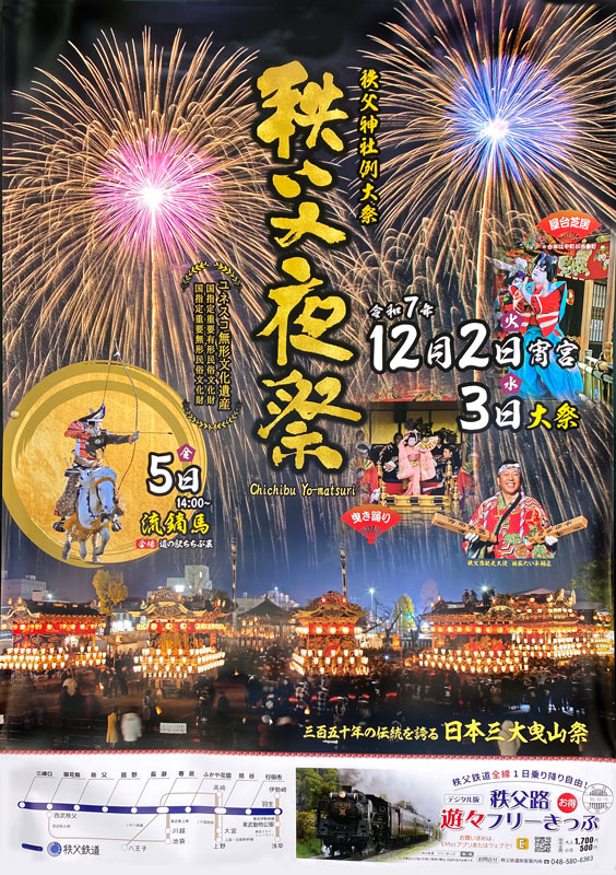 12月2.3日は、ユネスコ無形文化遺産の秩父夜祭です。