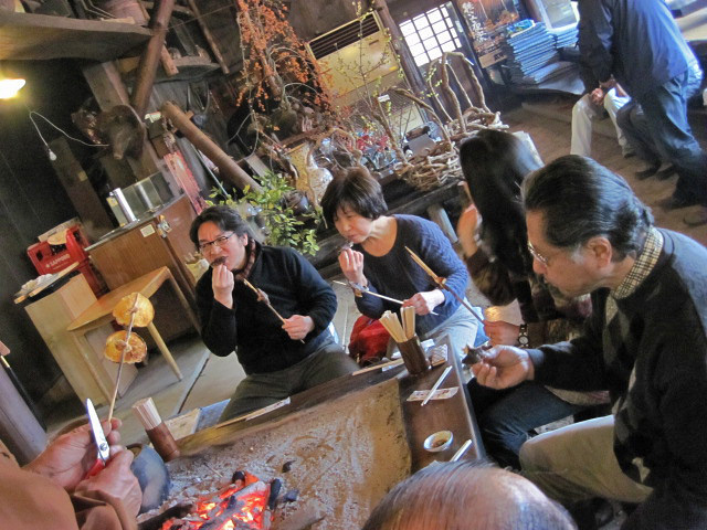 鈴加園の囲炉裏で焼く原木しいたけは肉厚ジューシーで格別です。