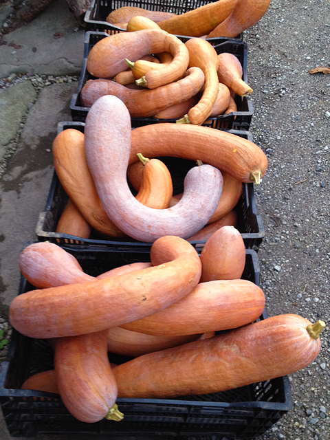 大きく実った鶴首かぼちゃ収穫